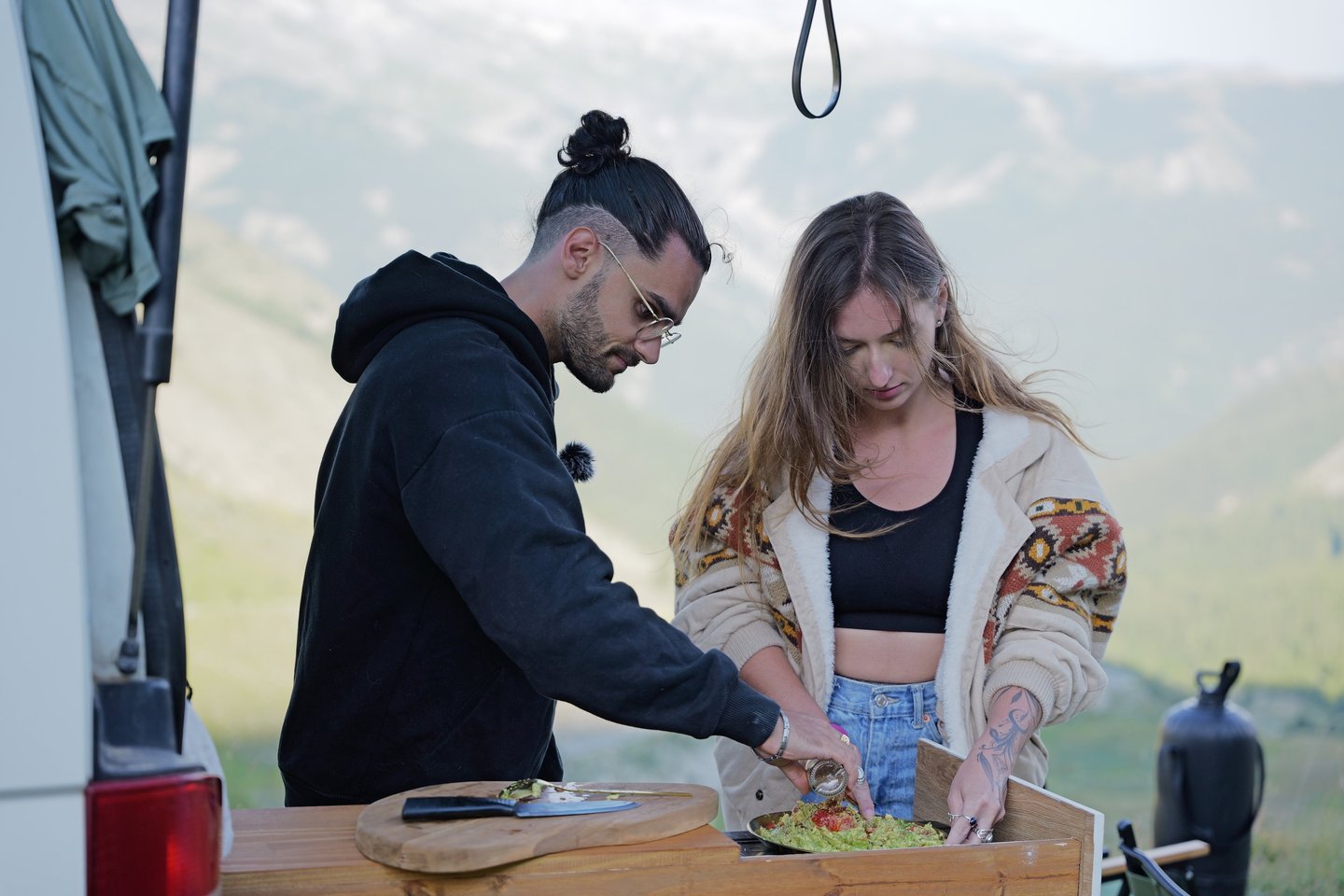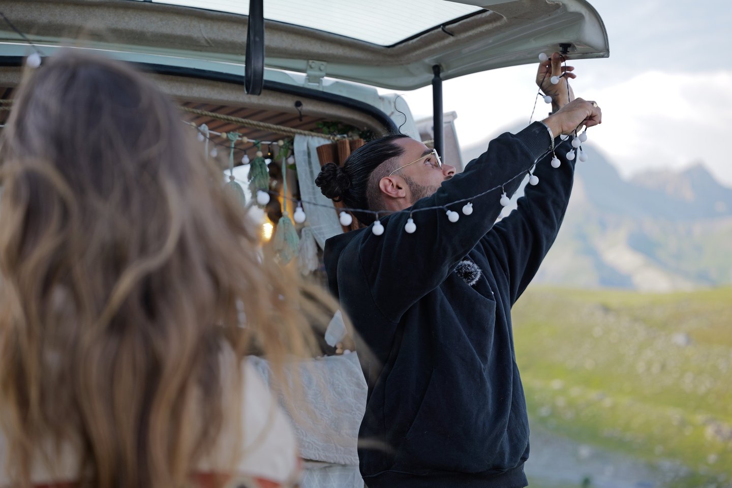 Le dispositif technique mis en place comprenait notamment plusieurs GoPro installées à bord du van pour capturer les scènes de route et de vie quotidienne, en complément des prises de vues principales.